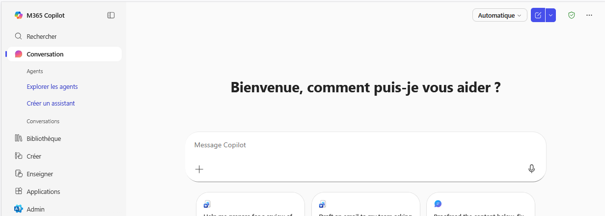 Vous êtes redirigé vers la page d’accueil M365 Copilot.