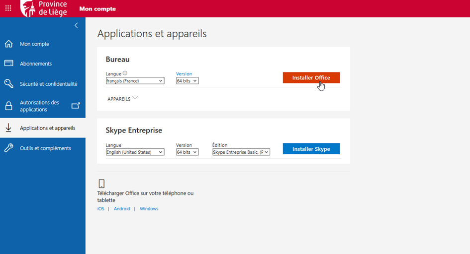 - Enfin, cliquer sur le bouton "Installer Office". Le fichier exécutable se télécharge.