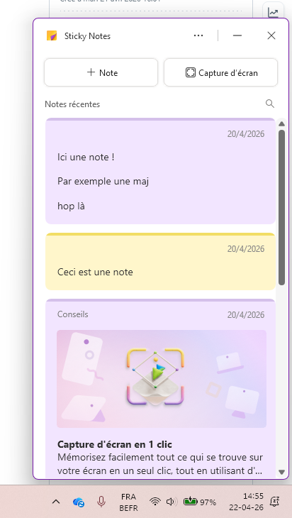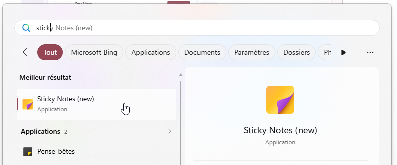 Une fois installée, vous pouvez rechercher "Sticky Notes" dans votre menu Démarrer : la nouvelle version se distingue par une icône et une interface modernisées.