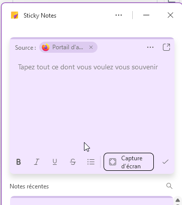 Formatage du texte : Vous disposez désormais d'options de mise en forme directement accessibles : gras, italique, souligné, texte barré et surtout les listes à puces, idéales pour les listes de tâches rapides. Il peut même détecter sur quel onglet web vous êtes et l’épingler comme source.