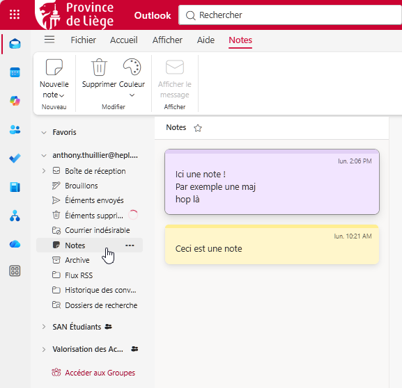 L'un des atouts majeurs de cette nouvelle version est sa parfaite intégration avec votre messagerie. Même si vous n'avez pas votre ordinateur personnel sous la main, vous pouvez retrouver, modifier ou créer des notes en vous connectant à Outlook sur le web (via votre portail étudiant).
